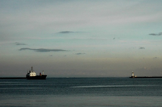曇りの海。海の方まであるいていってみた。裏寂しいばしょだった。