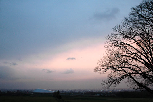 羊ヶ丘からの景色をみる。札幌ドームがじゃまだ。雨がふってきた。