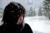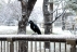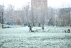 赤れんがのとこのカモ。さむそう。だって雪が降っているのだもの。