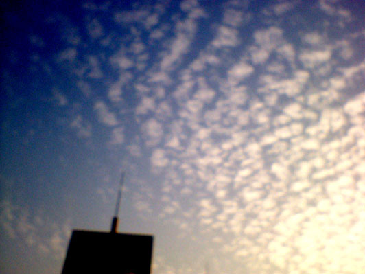 今日の空はすごかった。このつぶつぶみたいな雲がぐわーっと流れてたので。