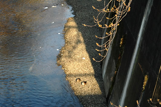 橋の上からうずくまるカモ2羽をみた。