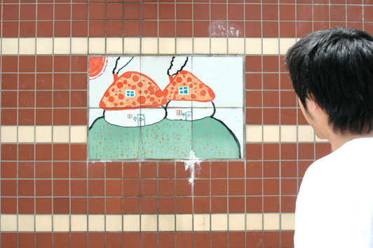 私が9歳のときに描いた絵が、公園の壁に今も飾られてる。それにしてもセンスなし。それにしてもこわい。それにしてもキモイ。そしておどろおどろしい。
