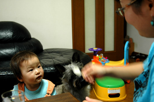 涼ちゃんがカホちゃんにナシをあげようとしたら、タンクが横取りしようとして、おこられてた。犬なのにナシをたべる犬。