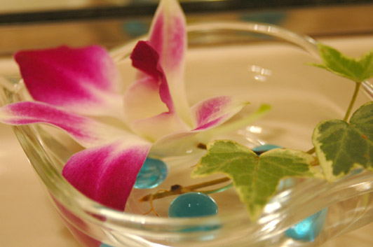 おふろのわきに生花があった。