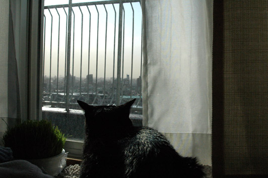 すごい風。それでも今日も猫はベランダにむかう。くじけない。