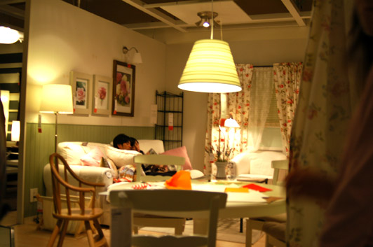 ショールームでくつろぐカップルをバイクが隠し撮り。本物の盗撮っぽい。