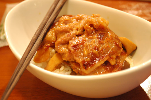 寝てたらおこされて、夕ご飯の生姜焼き丼ができてた。ので、たべた。