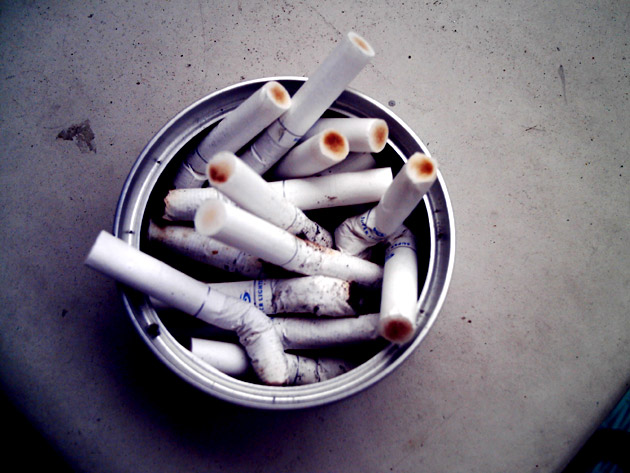 会社に戻って、ふとベランダをみると、猫の缶詰が灰皿になってた。