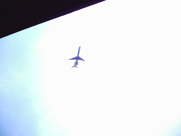 新大阪の駅からは、飛び立った飛行機がおおきくみえる。