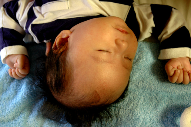 寝ている姿を総勢6人でじっと見つめる。