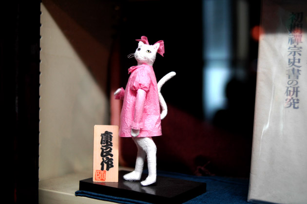 歩くことに気が済んだので、明治通をてくてく歩いて帰る。ドラゴンがだいすきな往来座のショーケースにいた、かわいいワンピースを着た猫。今日であえた猫はこの子をふくめて3匹。