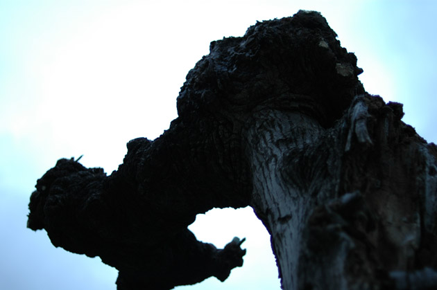 葉っぱも枝も切られてしまって、路地のすみっこにはえてた木。がんばれとおもった。