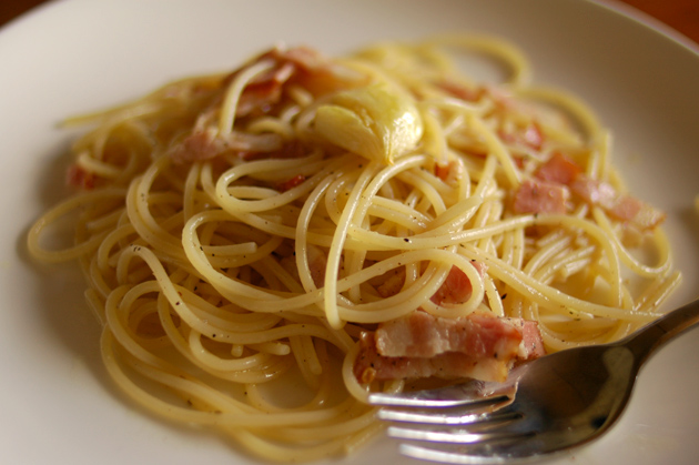昼、おきた。ペペロンチーノ。うまい。