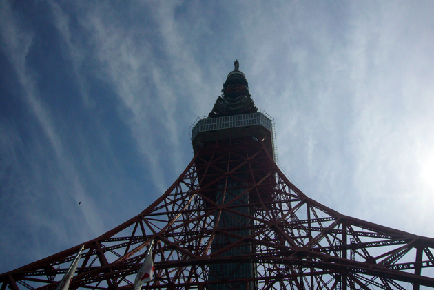 正面写真。いっぱい撮った。これがいちばんこわい東京タワー。東京タワーに近づいたためか、今日はいちにち頭が痛かったのだ。