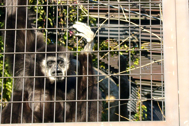 孔雀が憂いている理由は、このテナガザルと同じ檻だからと思う。