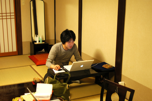 箱根湯本から塔ノ沢まであるいて、旅館到着。こわい吊り橋をわたったところに目的の旅館はあるのです。いいかんじです。