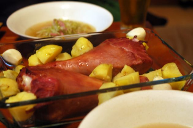夕ご飯は1ヶ月前くらいから頼んでおいたスモークターキーをオーブンで焼いてたべた。耐熱皿にじゃがいもとニンニクとオリーブオイルを入れて。んまい! 来年もこのターキーだな。