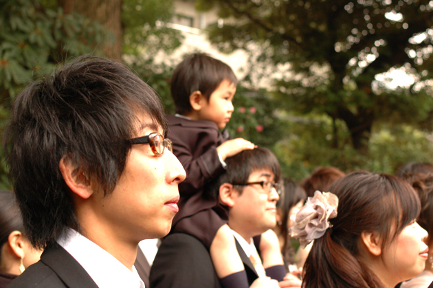 ナツを肩車してどうみてもお父さんなバイク。神妙な面持ちの吉川氏。